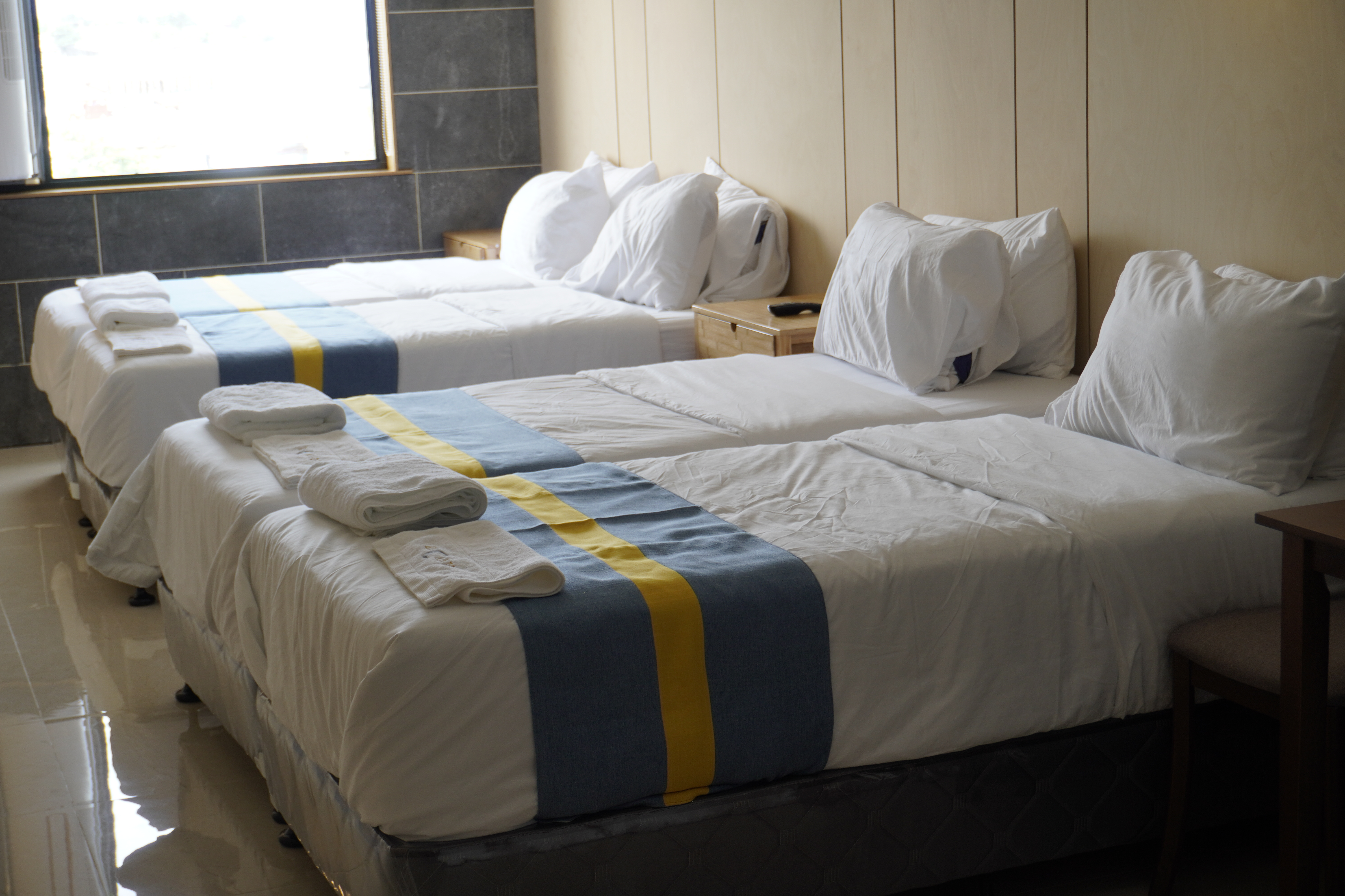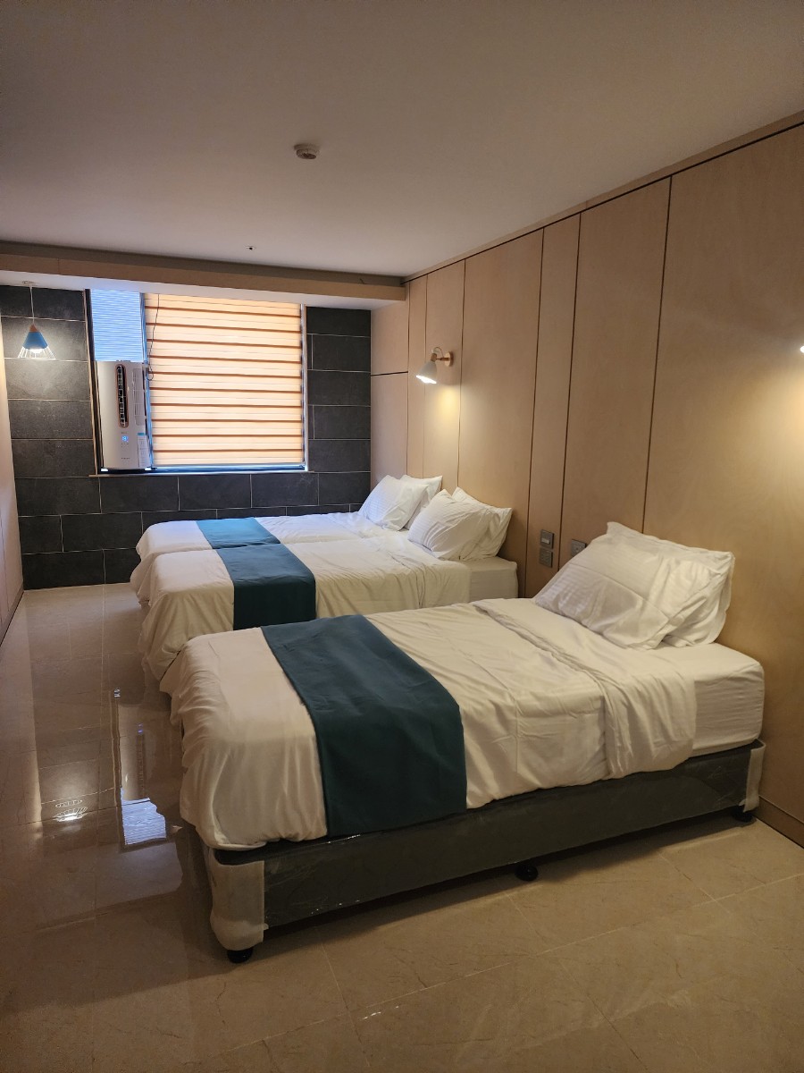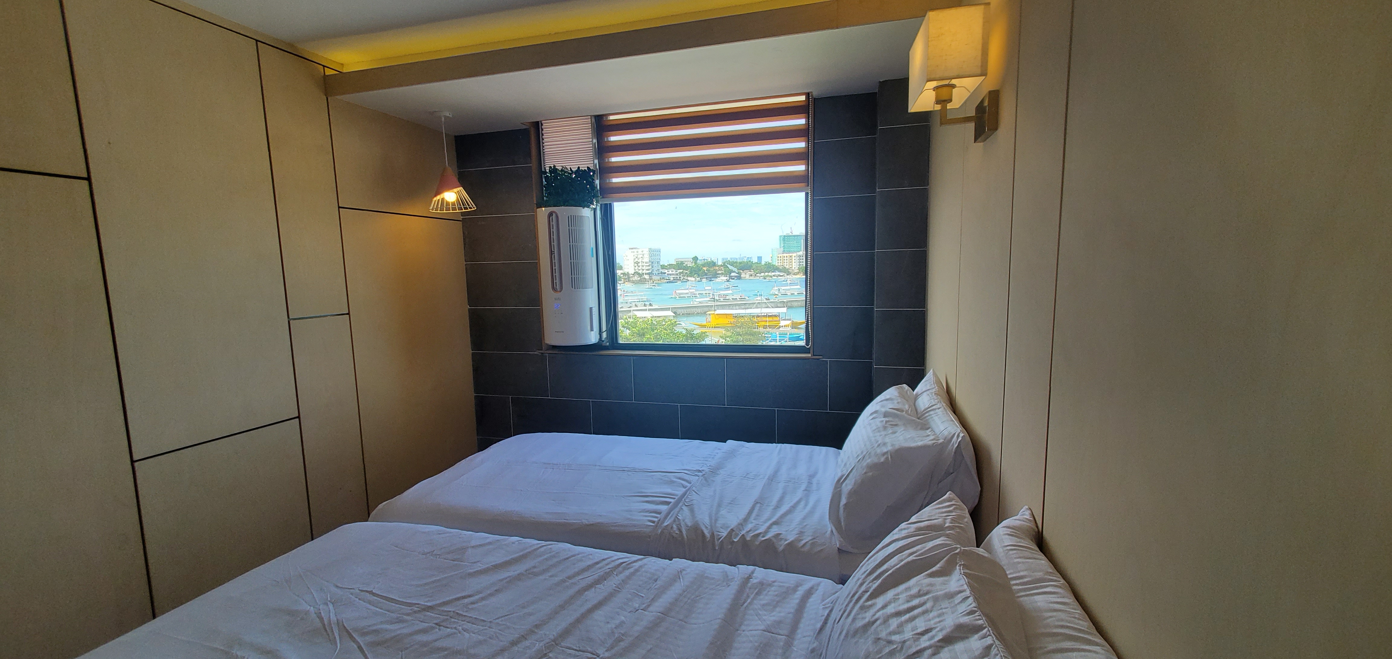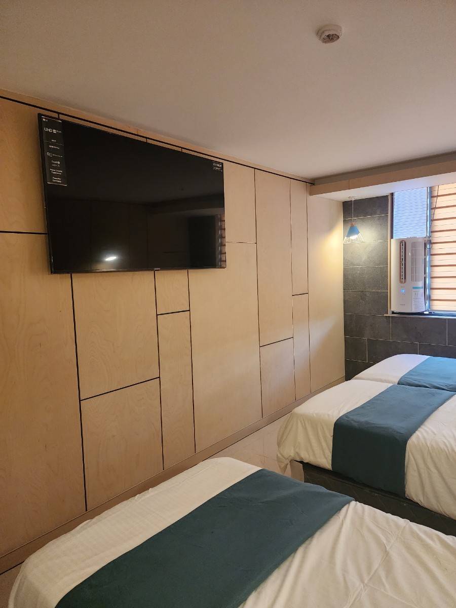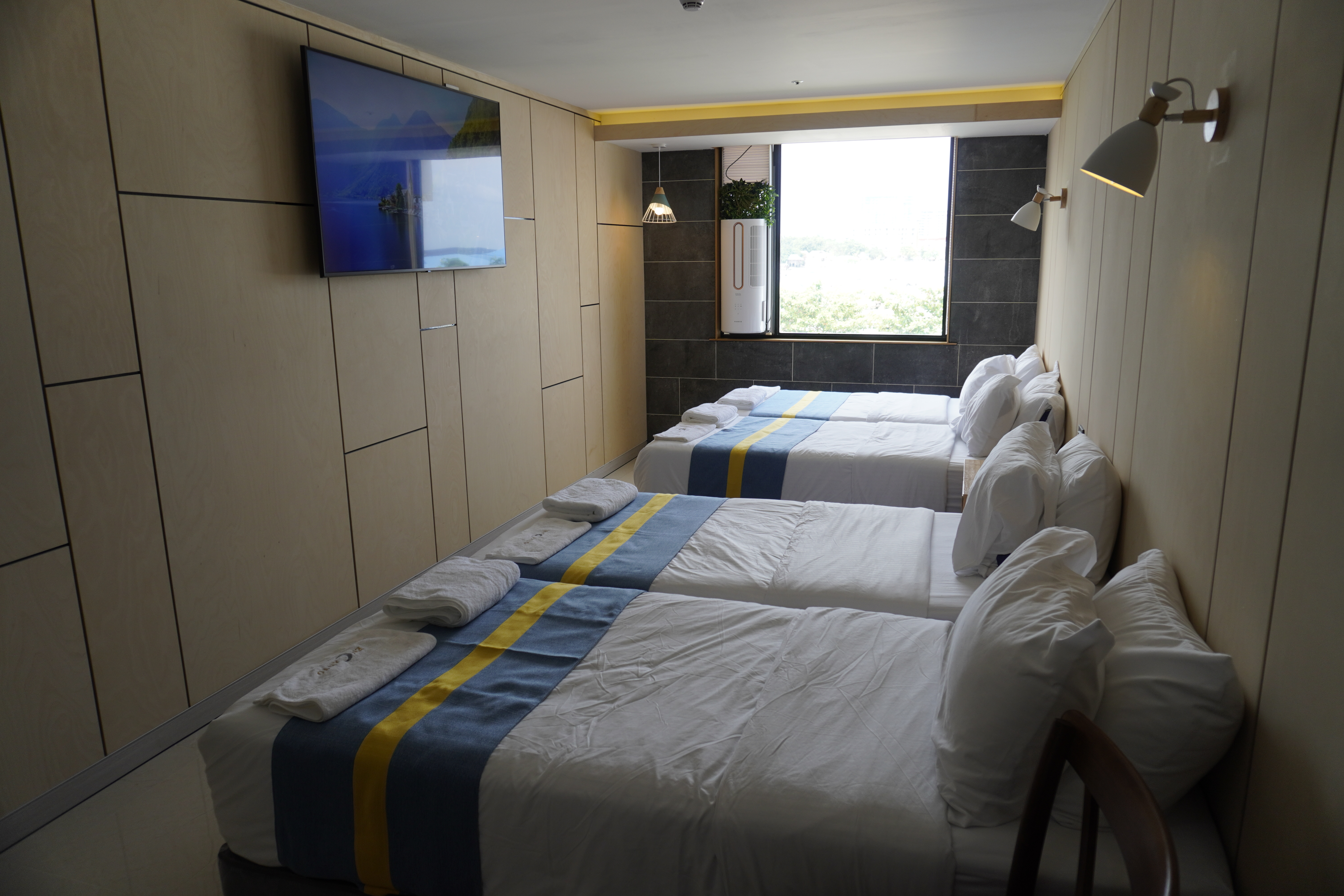 親子房每間房最多可入住四人,從窗外即可遠眺宿霧海景,房內配備65吋大電視,可觀看Netflix與YouTube,舒適又便利。